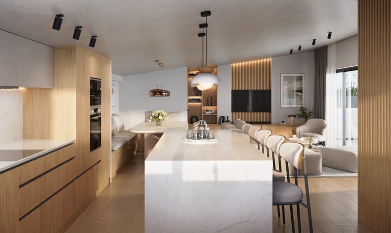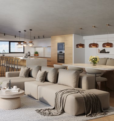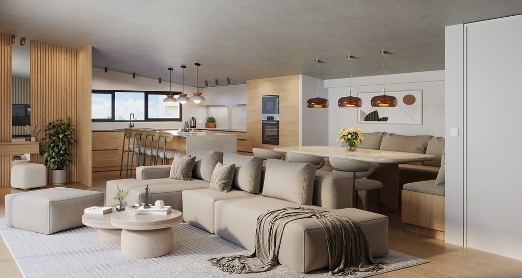 This apartment offers a stylish open-plan layout combining comfort with smart design to maximize space and light.