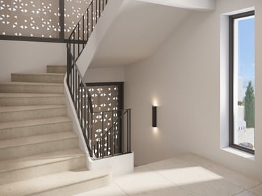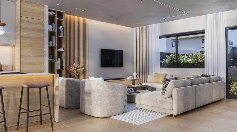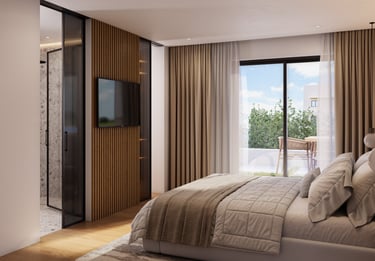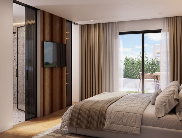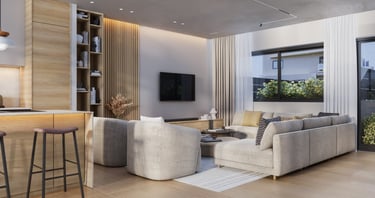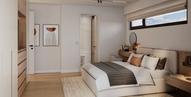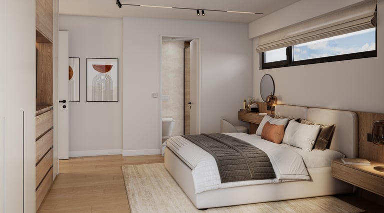 Σχεδιασμένο με έμφαση στην άνεση, το διαμέρισμα αυτό διαθέτει μια γαλήνια χρωματική παλέτα και απαλές, φιλόξενες υφές που προσκαλούν σε απόλυτη χαλάρωση.