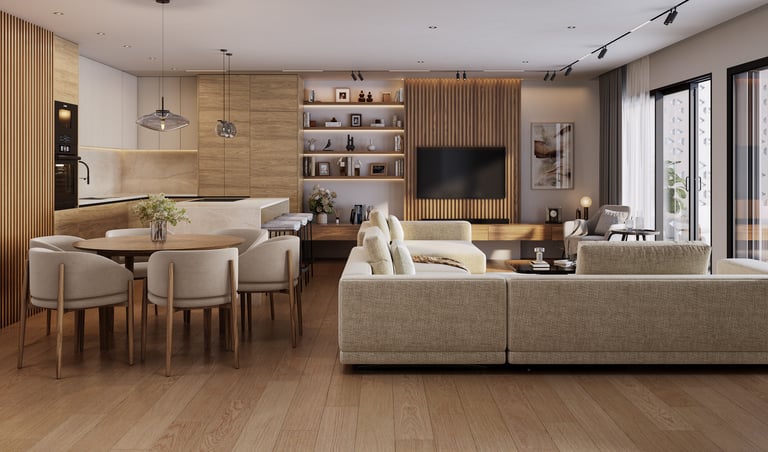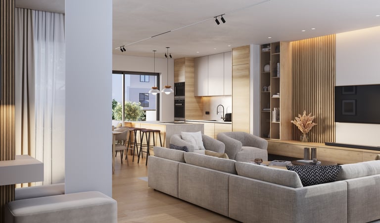 Φωτεινός, ζεστός χώρος με σύγχρονη μινιμαλιστική αισθητική.